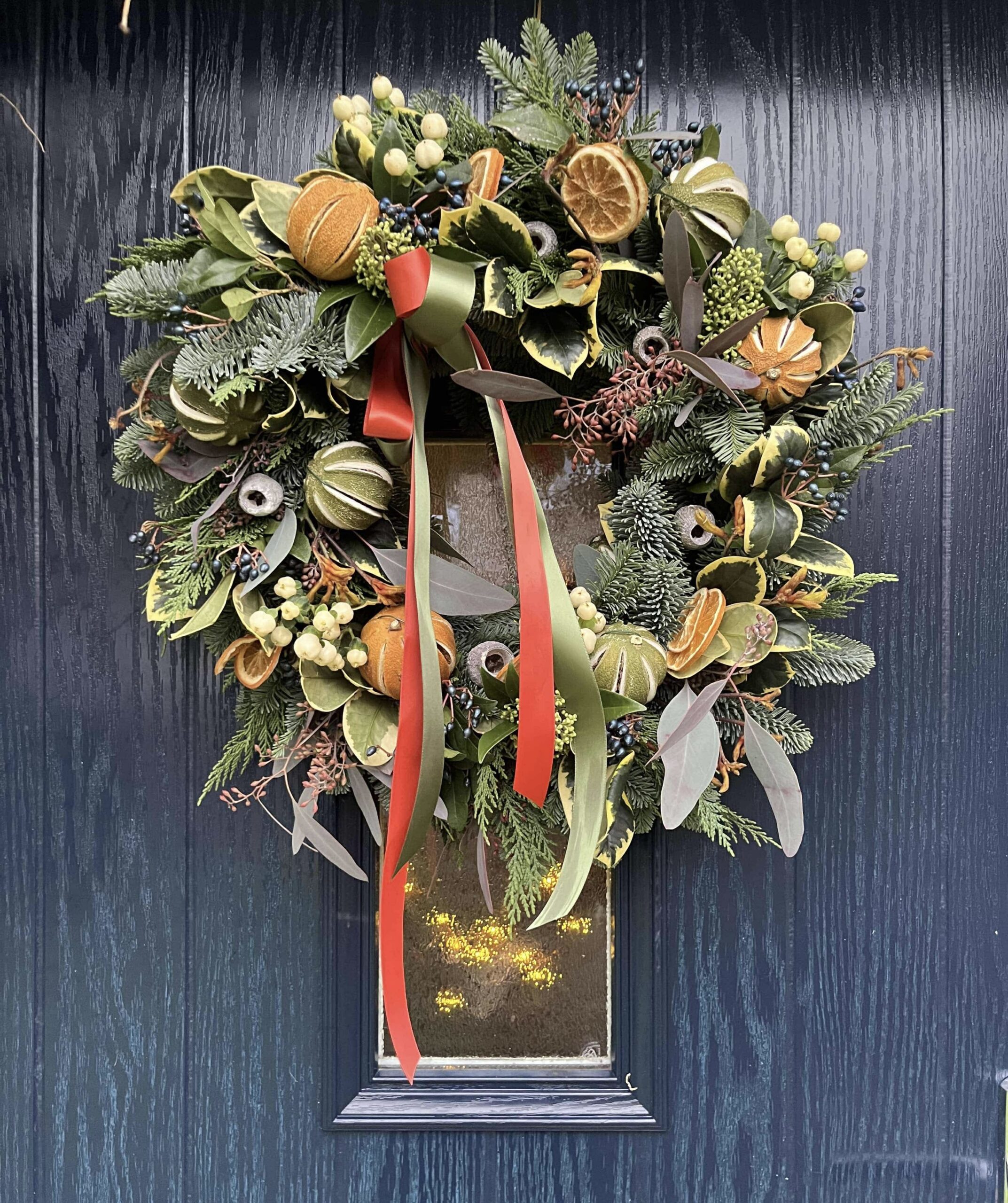 To order a bespoke festive door wreath please use the ‘Get in Touch’ icon at the bottom of the page to send us a message.